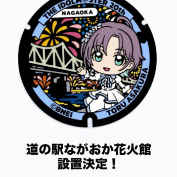 速報!!!!!! 『アイドルマスター』シリーズ20周年記念 マンホールプロジェクト「ふたマス‼︎‼︎‼︎」✨✨ 当施設に新たなマンホールの設置が決定😆 なんと今回はアイドルマスター シャイニーカラーズと長岡花火&長生橋がコラボしたマンホール